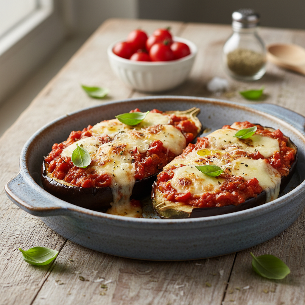 Ta recept je zasnovan tako, da je preprost za pripravo, a vizualno privlačen in poln okusa. Gre za lažjo različico klasične “Parmigiane”, kjer se izognemo cvrtju, a obdržimo vse bogate mediteranske okuse. Jed je sočna, sir se bohotno vleče, robovi jajčevcev pa so rahlo karamelizirani.