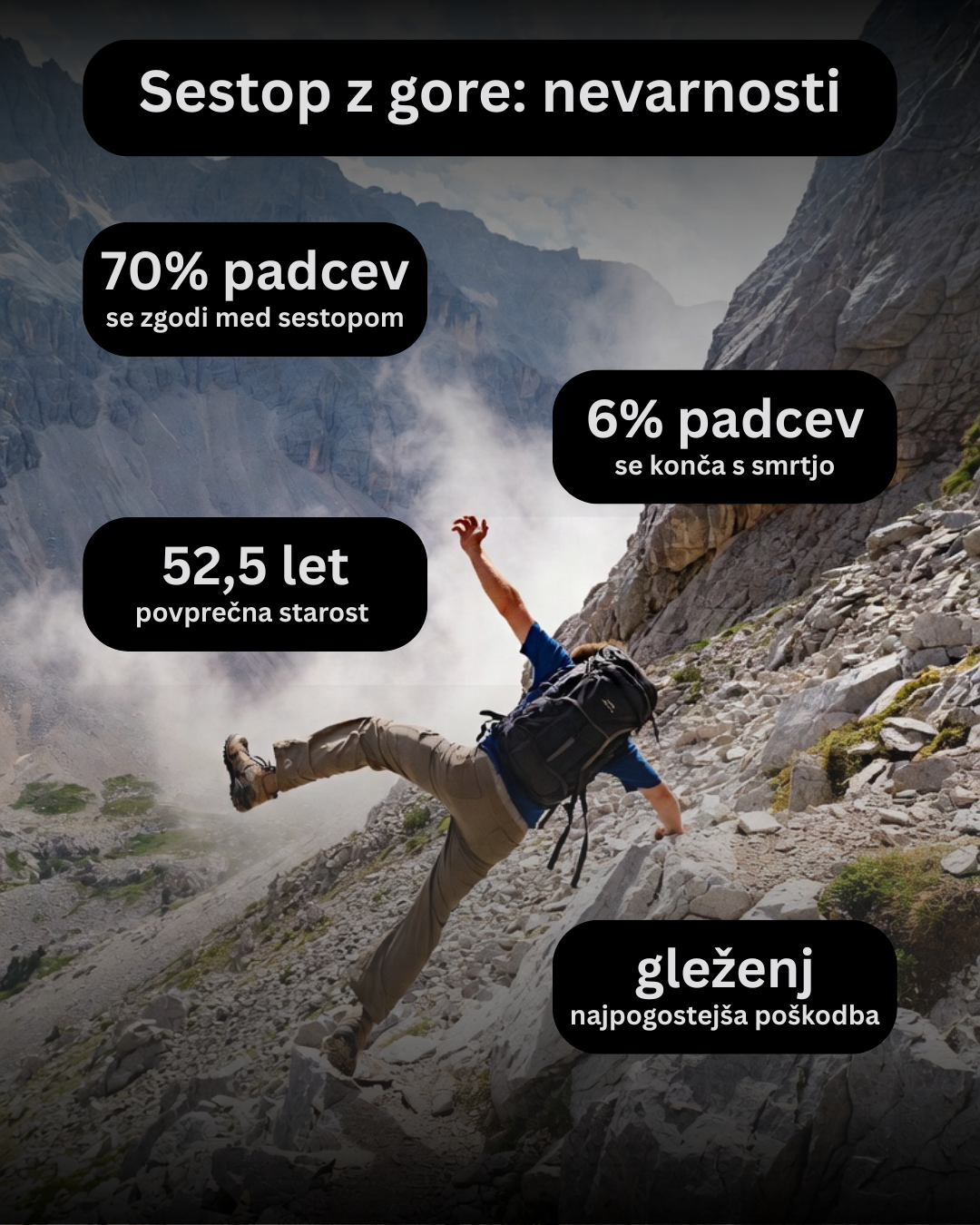 Vzpon pogosto pritegne največ pozornosti, ko govorimo o planinskem izletu v naravo, vendar številni začetniki zanemarjajo nevarnost sestopa. Znanstvene raziskave kažejo, da se večina padcev in nesreč zgodi prav pri vračanju z gore, in to v precejšnjem deležu, poudarja analiza platforme Shoptok.si.