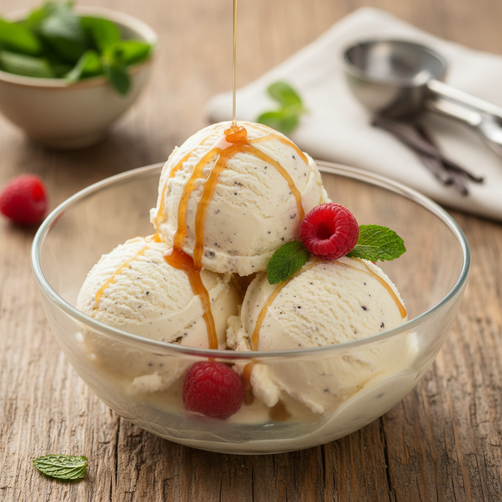 - Karamela: Sladkor stopite v karamelo in ga vmešajte v mlečno bazo. Sladoled bo imel temno, bogato aromo.