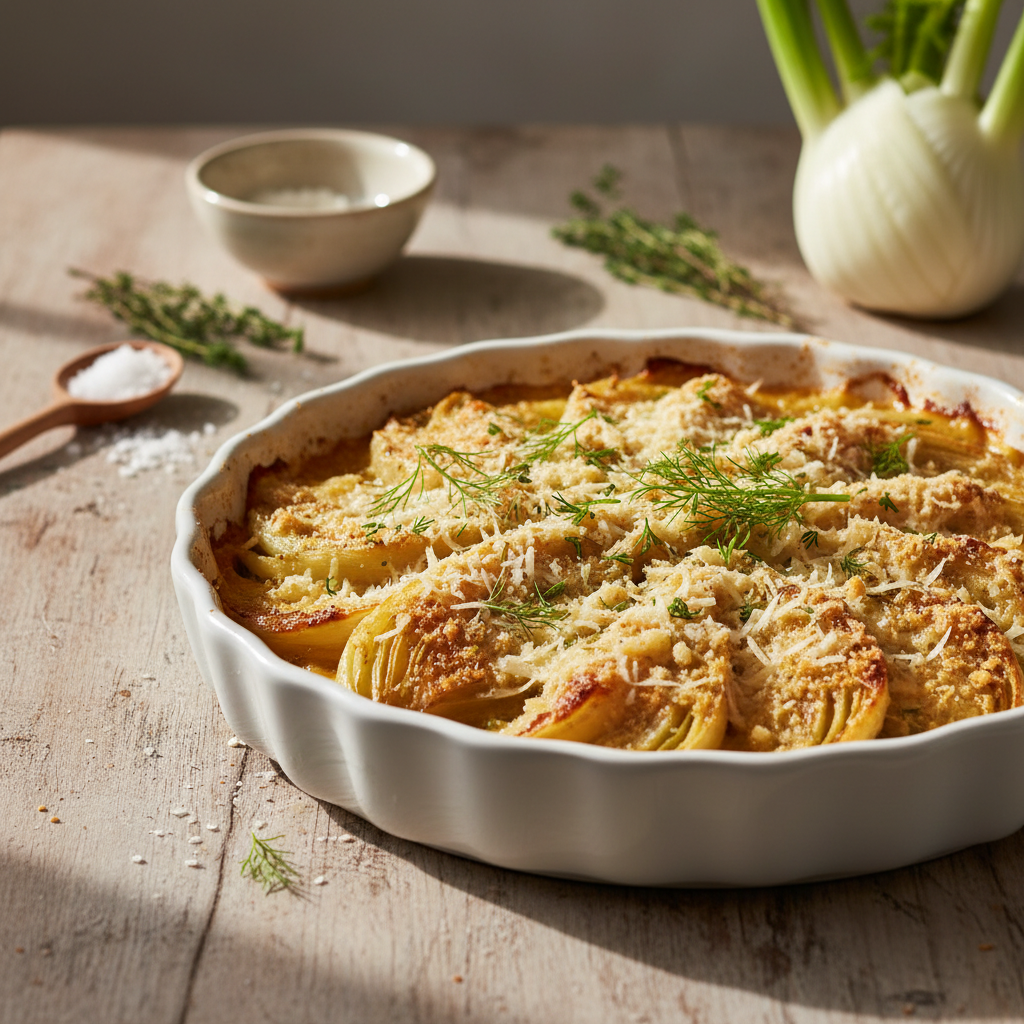 Za ta recept ne potrebujete eksotičnih sestavin. Čar je v preprostosti in kvaliteti osnovnih živil. Pripravili bomo gratiniran koromač s parmezanom in maslom. Ta kombinacija maščobe in slanega sira odlično uravnoteži naravno sladkobo zelenjave.