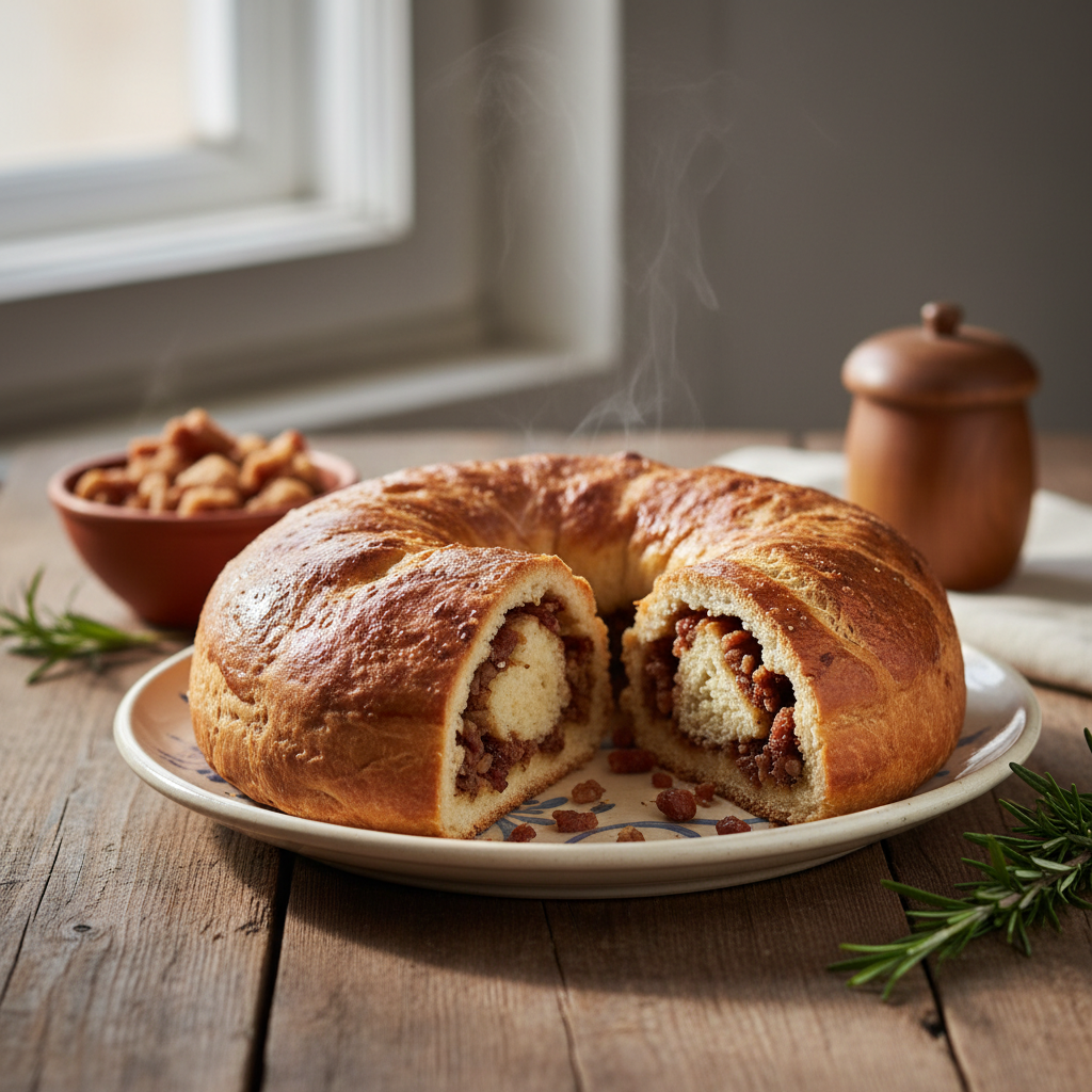 Ocvirkovka, pogosto imenovana tudi ocvirkova potica ali v nekaterih narečjih špehovka (čeprav gre tehnično za rahlo drugačen nadev), je kulinarična posebnost, ki jo pozna skoraj vsaka slovenska regija. Najpogosteje jo povezujemo s časom kolin, pustom in velikonočnimi prazniki, vendar je zaradi svoje priljubljenosti postala jed, ki se na mizi znajde kadarkoli želimo pogostiti drage goste ali si privoščiti krepko malico. Njena posebnost se skriva v kontrastu: rahlo, skoraj sladkasto kvašeno testo objema slan, hrustljav in masten nadev iz ocvirkov. Ta harmonija okusov je tisto, kar jo dela edinstveno. Za razliko od sladkih potic, ocvirkovka dopušča nekoliko več svobode pri razmerju med testom in nadevom, ključno pa je, da ocvirki niso preveč suhi, a hkrati ne preveč mastni, da testo ne postane “zbito”.